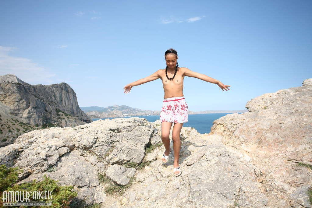 This sunburnt angel was wandering among huge rocks and when it was too sexy nude teens for her she decided to take off her skirt and show her hairy pussy.