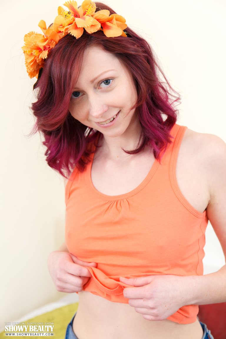 Sweet and sexy ginger girl drops off everything and poses totally naked showing off her perfect little tits.